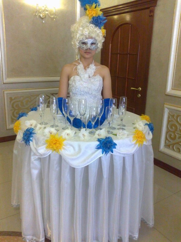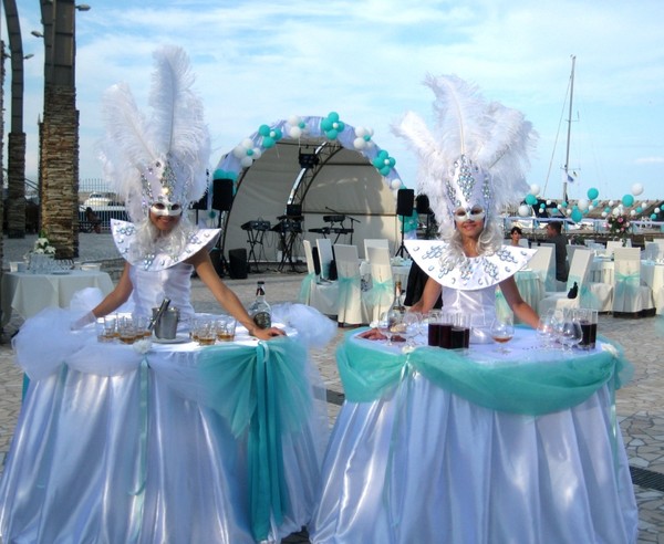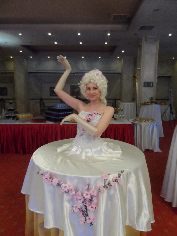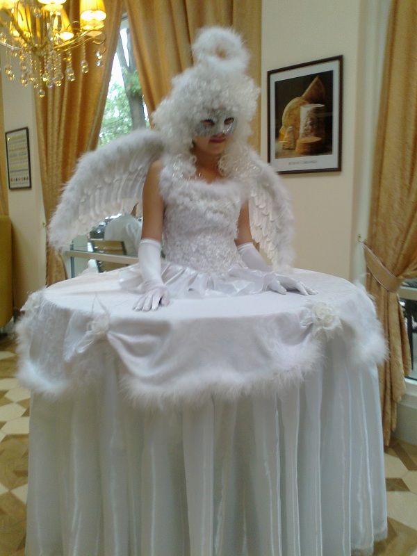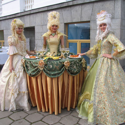 Приятным удивлением для Ваших гостей будет вторая Леди, играющая на скрипке. Одновременно являясь фуршетным столом, она превратит обычные угощения в светский праздник. Ценители живой музыки среди Ваших гостей будут наслаждаться ее музыкой, и угощаться легкими закусками, а третья Леди-Фуршет споет Вам песни на разных языках. Вальсируя среди гостей, она посвятит каждому из них хоть строчечку песни. Ни один гость не останется без ее внимания.