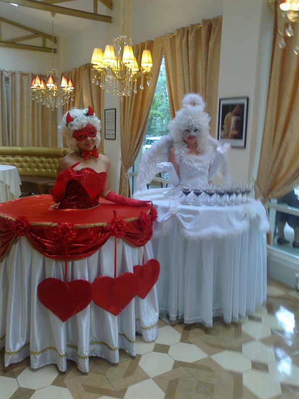 Фишка компании — это различные необычные услуги для праздников. Например, это ЛЕДИ-ФУРШЕТ («Живой» стол, Девушка-стол, Леди-бар…)