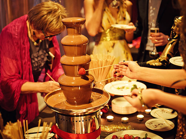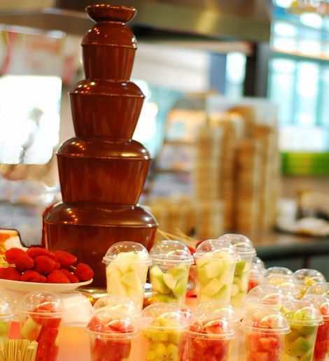 Фонтан украсит любое торжество: день рождение, свадьбу, выпускной или корпоративную вечеринку! Ваши гости придут в восторг, когда смогут сами погружать кусочки фруктов, ягоды или выпечку в «шоколадный водопад»! Каждый может выбрать шоколад на свой вкус. Если шоколад в фонтане заканчивается, а праздник еще в разгаре, то можно по мере необходимости добавлять шоколад!