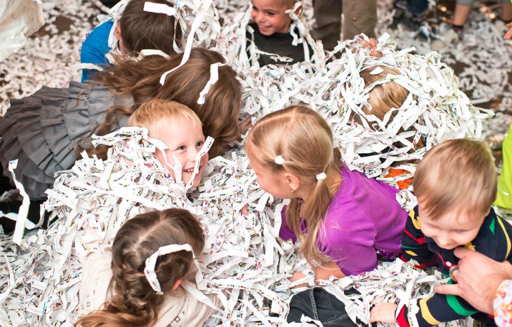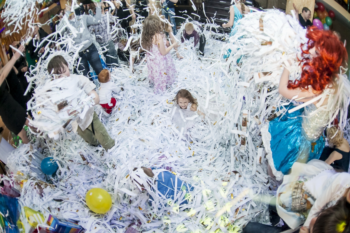 Бумажное шоу для детей представляет собой веселое анимационное представление, в процессе которого, при помощи специальной пушки в зале рассыпается огромное количество нарезанной бумаги и разноцветного конфетти. Под зажигательную музыку все гости мероприятия веселятся, кидаются бумажными хлопьями, участвуют в смешных конкурсах с бумагой и, конечно, танцуют в снежно-бумажном вихре!  Шоу из бумаги приводит  в восторг не только детей, но и взрослых, ведь когда еще можно запустить бумажный фейерверк, устроить перебрасывания кипами бумаг, искупаться в бумажном море и с головой окунуться в бумажный сугроб? Только на бумажном шоу