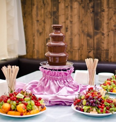 Фонтан украсит любое торжество: день рождение, свадьбу, выпускной или корпоративную вечеринку! Ваши гости придут в восторг, когда смогут сами погружать кусочки фруктов, ягоды или выпечку в «шоколадный водопад»! Каждый может выбрать шоколад на свой вкус. Если шоколад в фонтане заканчивается, а праздник еще в разгаре, то можно по мере необходимости добавлять шоколад!