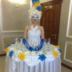 Приятным удивлением для Ваших гостей будет вторая Леди, играющая на скрипке. Одновременно являясь фуршетным столом, она превратит обычные угощения в светский праздник. Ценители живой музыки среди Ваших гостей будут наслаждаться ее музыкой, и угощаться легкими закусками, а третья Леди-Фуршет споет Вам песни на разных языках. Вальсируя среди гостей, она посвятит каждому из них хоть строчечку песни. Ни один гость не останется без ее внимания.