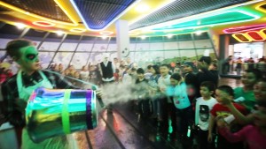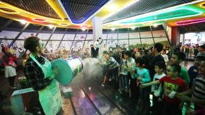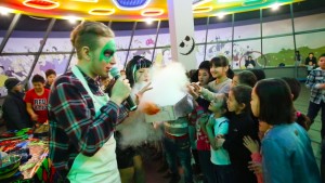 В программу входят :Опыты с огнем, большие взрывы, опыты с жидким азотом, с сухим льдом, гигантские мешки, воздушные пушки, страшный вулкан, и дымовые пушки!