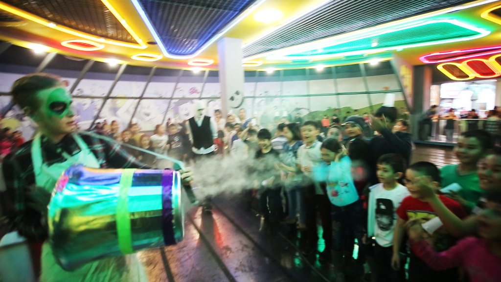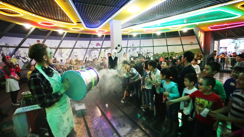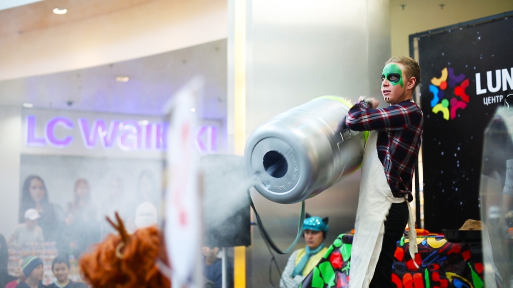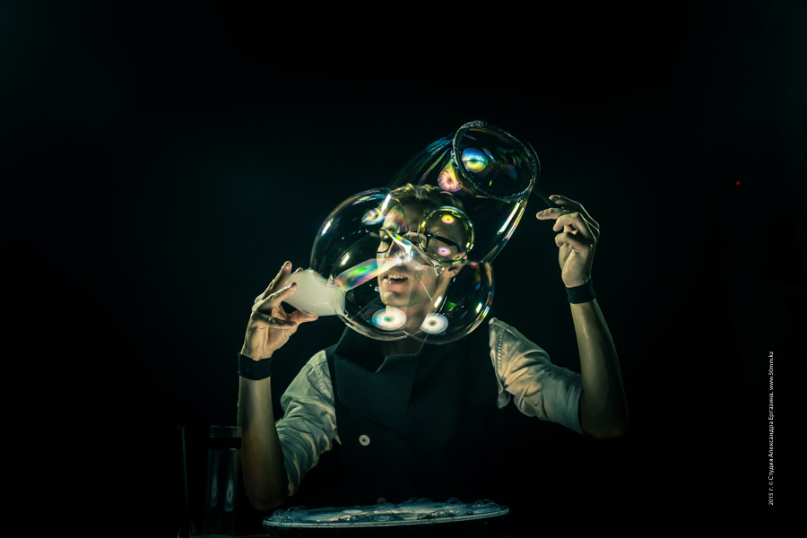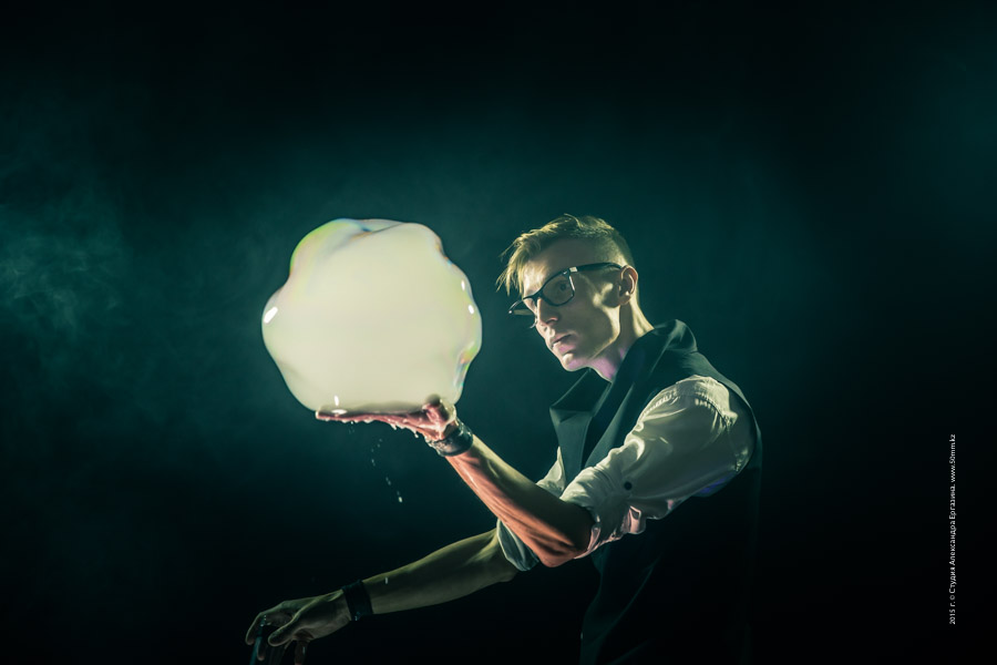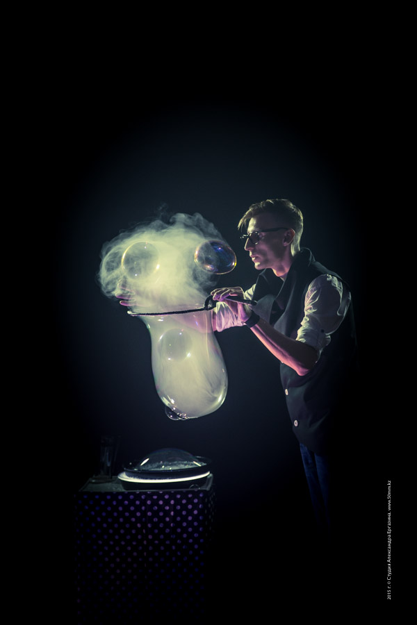 Шоу светящихся и дымчатых пузырей