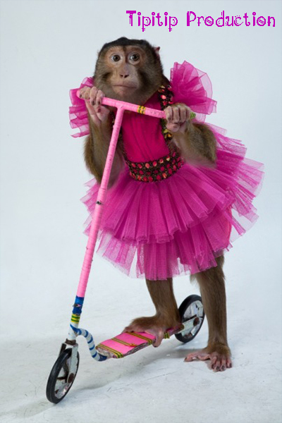 Кто самая прирожденная актриса у детей?... Ну конечно же - это обезьянка. Наша озорная обезьянка- праздник для детей любого возраста! Это будет весело, ведь она придет не одна, а с настоящим клоуном ! Наша обезьянка может кататься на самокате , прыгать, кувыркаться и многое другое!